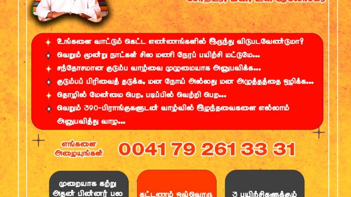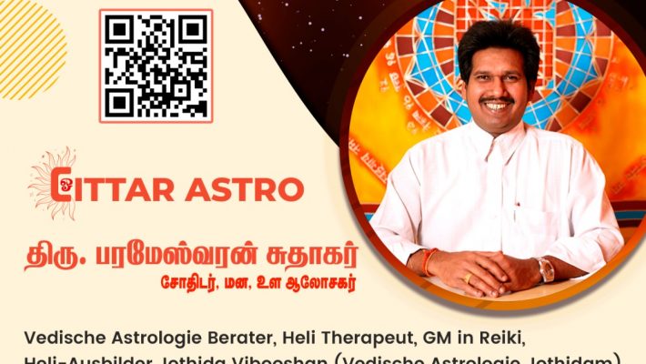 ❇️ உங்களின் உடல்நிலை, மனநிலை போன்றவற்றை பேணுகின்ற சக்கரங்களின் வலிமையை தெரிந்து கொள்ளவும், உங்கள் சந்தேகங்களுக்கான உடனடிப்பதிலை தெரிந்து கொள்ளும் தொடுகுறி சோதிடமும் ஜெர்மன் மொழியில்  எமது  இணையதளத்தில் பார்த்து தெரிந்து கொள்ளலாம்.