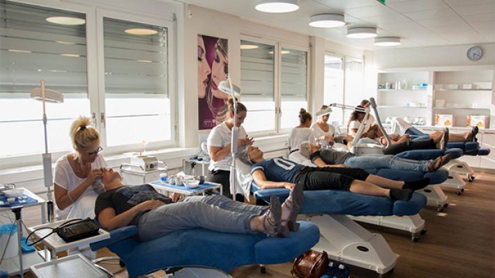 As a beautician you work freelance or in a permanent employment. Possible areas of work include self-employment in a private institute. Cooperation with hairdressers, work in cosmetics companies or cosmetics brands in department stores, spa hotels, wellness and health centers, massage practices, cruise ships, drugstores, pharmacies, medical areas such as beauty surgery or dermatology practices , Care after the training is guaranteed by George Triantafillidis and information on our homepage www.faces-kosmetikschule.ch .