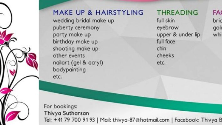 Thivya Beauty Care – Your destination for elegance and self-care. We specialize in makeup, hairstyling, threading, and facial treatments for all occasions. From weddings and parties to personal celebrations and photoshoots, our expert team ensures you look flawless and radiant.